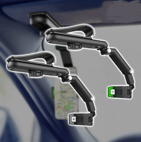 🛡️ Detta stativ har ett robust halkskydd som fäster din telefon till instrumentbrädan, solskyddet och till och med frontspegeln