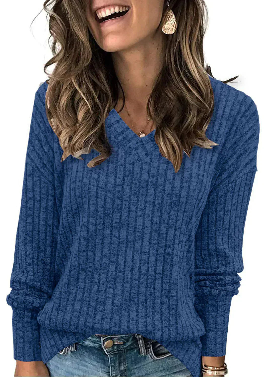 đ„V-hals lĂ„ngĂ€rmad enfĂ€rgad tröja för kvinnor