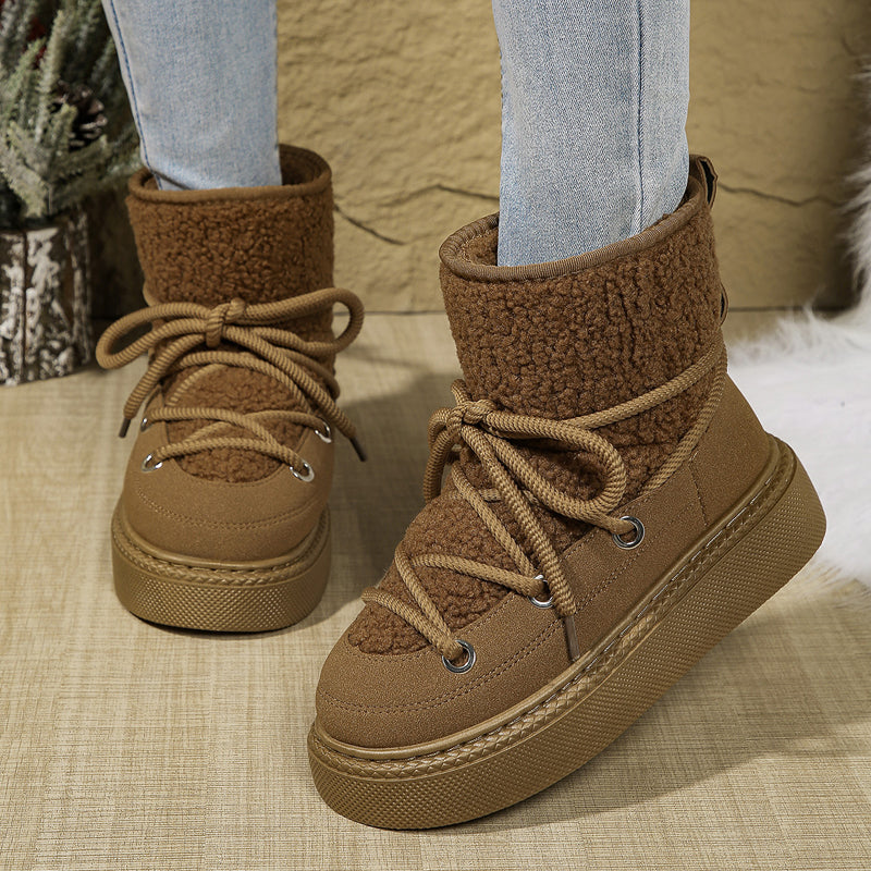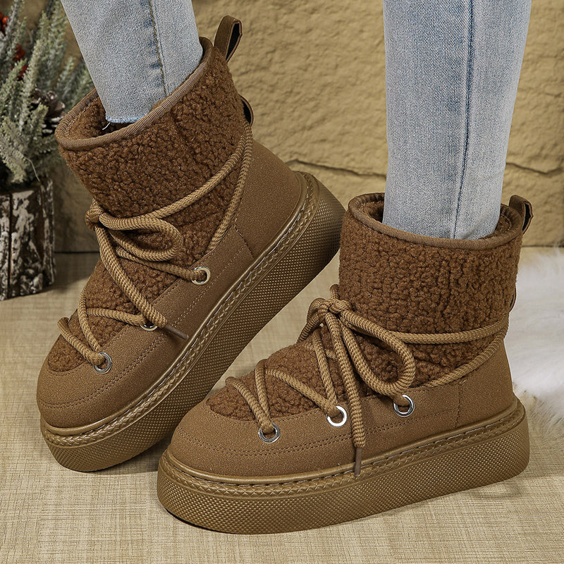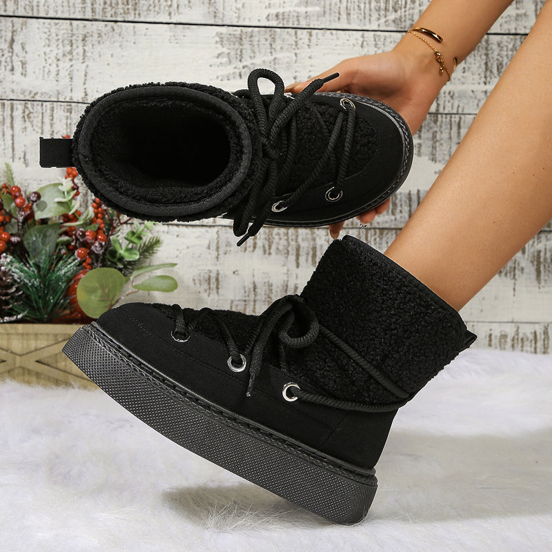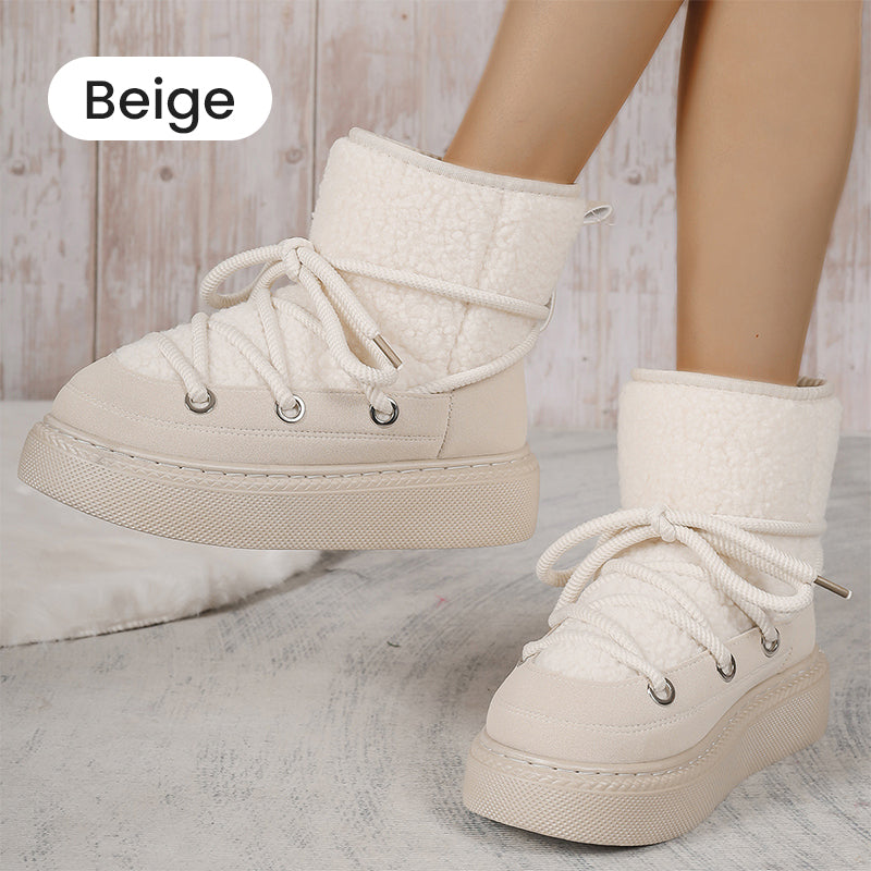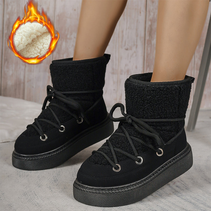Snöskor med tjocka sulor och fuskpälsfoder för kvinnor