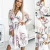 1 * Kvinnors V-hals vit blommig klÀnning med bÀlte