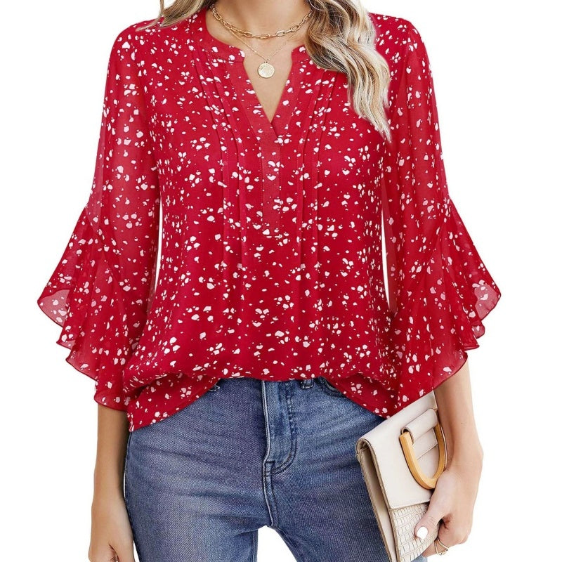 LÄTT CHIFFONGTYG: Tillverkad av mjukt och andningsbart chiffongtyg ger denna blus en bekväm och luftig passform, idealisk för heltidsanvändning i både varmt och kallt väder.