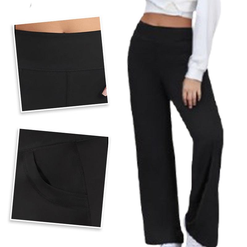 Yoga-byxor med hög midja och stretch för kvinnor, enkla, enfärgade och avslappnade