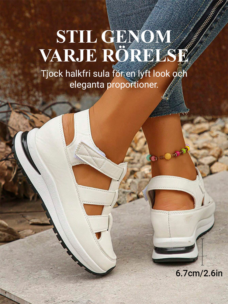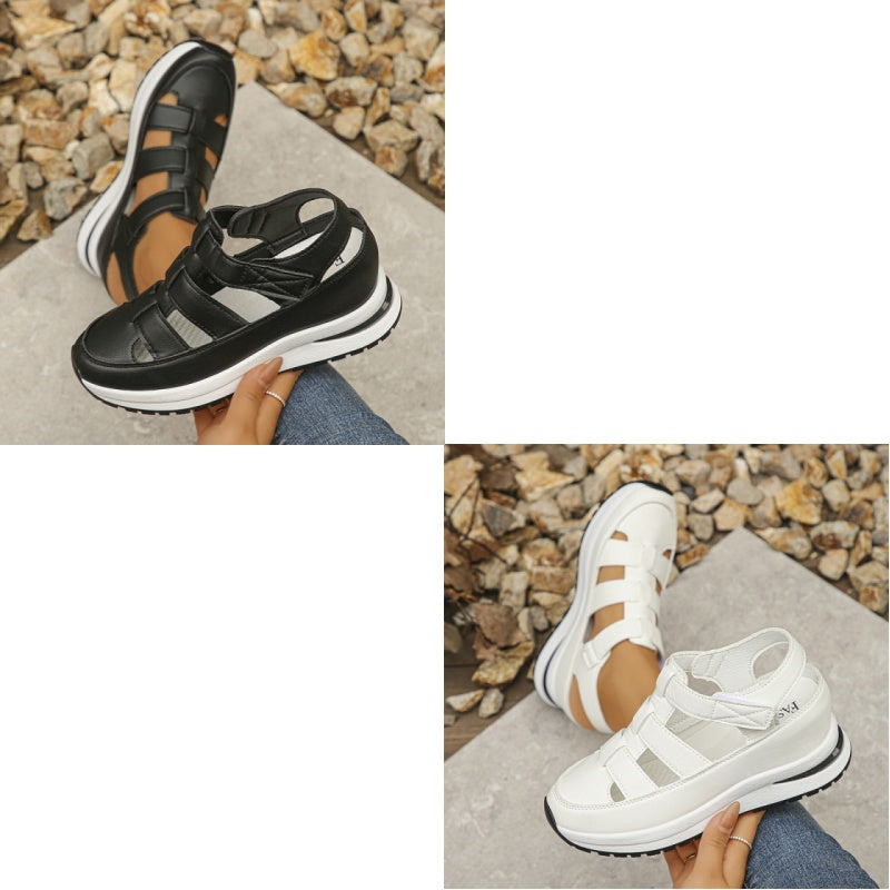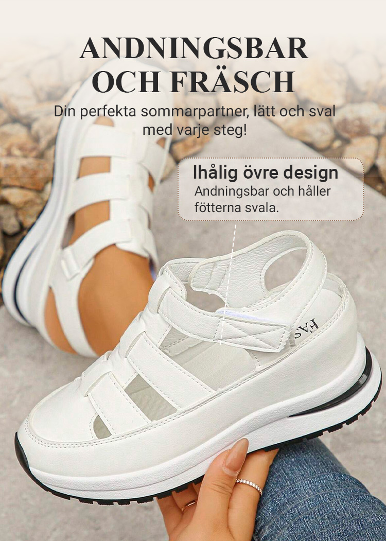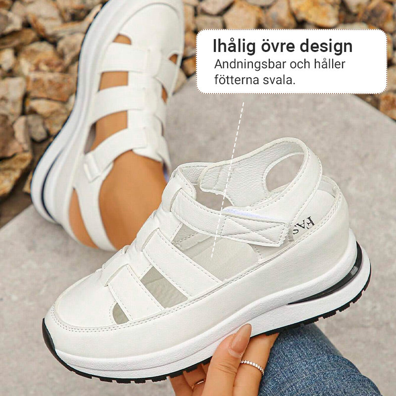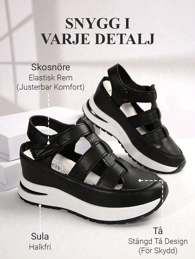 Ortopediska damsandaler med kardborreband, ihålig tå och stängd tå
